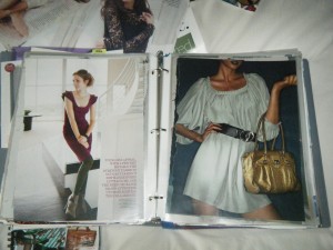 One thing I did do was pull out my trusty fashion binder. This is a compilation of pages of magazines I have pulled over the years of things that I like from fashion to makeup looks, to hair to house decorating ideas. I still add to this binder all the time but I also have a folder on my computer that serves the same purpose for the things I see online. I haven’t looked through this book in awhile (since I’m always on all of your blogs!) but doing so spawned a whole slew of ideas!