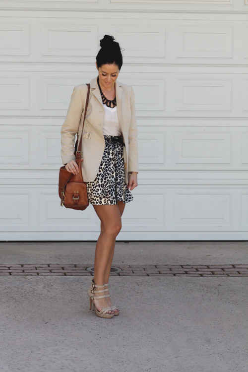 This is look numero dos of my October style series starring this beige blazer. I decided to pair it with this leopard print skirt I scored at Crossroads a little while back. I kept things neutral and added this beaded necklace my girlfriend gave me. Isn’t it cute?