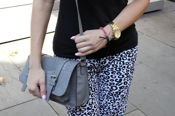 These leopard pants are in fact sweatpants. Since outside the gym I’m not the sweatpants kind of girl, I decided to dress them up into a more everyday wearable look. Â A great combo when your on the go!