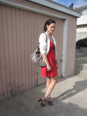 {Dress – Sam & Max, Blazer – Ann Taylor, Shoes – Gianni Bini, Bag – Hammit, Bracelets, Towne & Reese, Ring – Jewelmint, Earrings – Forever21}